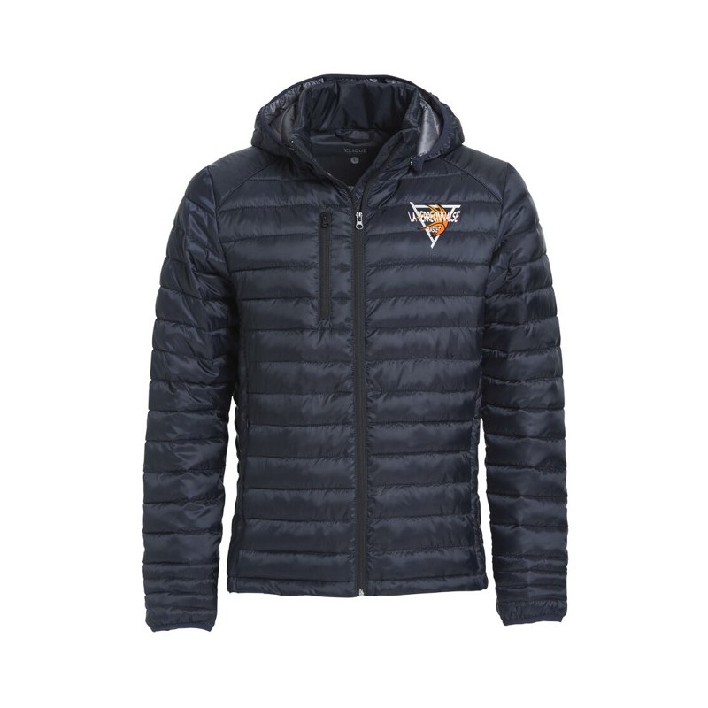 chaud et léger - 100% polyamide recyclé - 3 poches extérieures zippées - 2 poches intérieures - Bande élastique taille - capuche amovible uniquement pour la version femme - Passe écouteurs